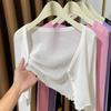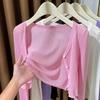 Ice Silk Shawl Blouse Sun Protection Clothing for Women New Spring Autumn Short Knitted Thin Cardigan Jacket Top