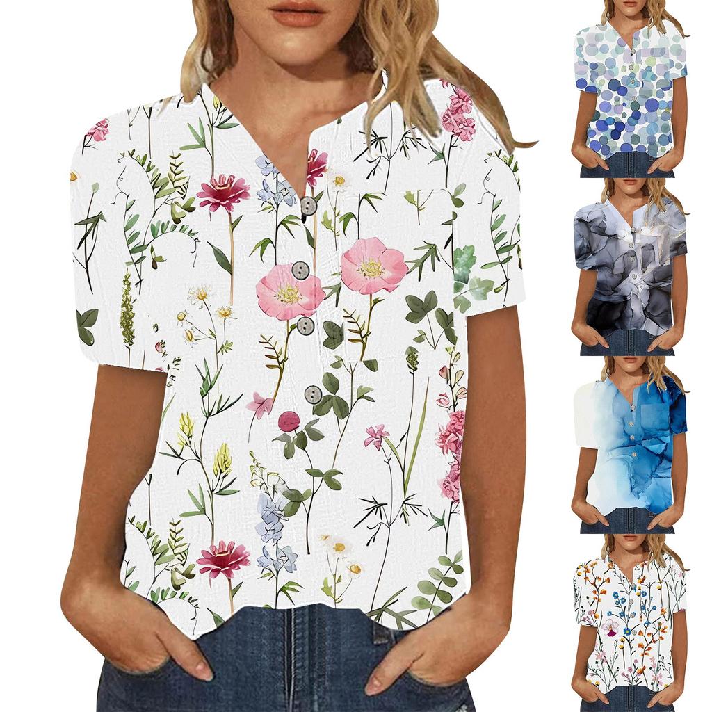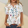 Women's Summer Casual Fashion Cotton Linen Printed Women's Short Sleeve Shirt Tops
