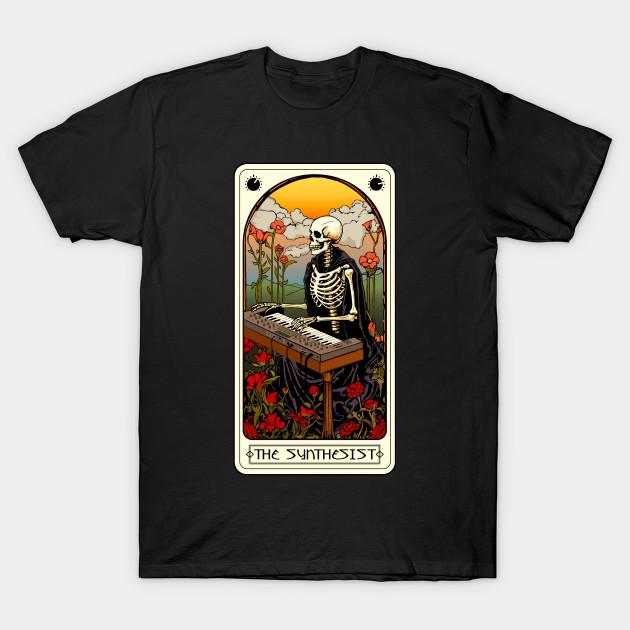 Men Black Print T-shirt Synthesizer Tarot Card For Musician No-Cut Transfer Paper Print Cotton Tshirt