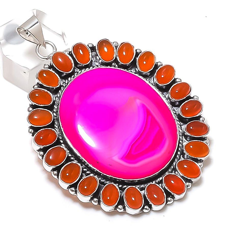 Natural Pink Lace Agate Gemstone 925 Sterling Silver Jewelry Pendant 2.76" ETC-13771