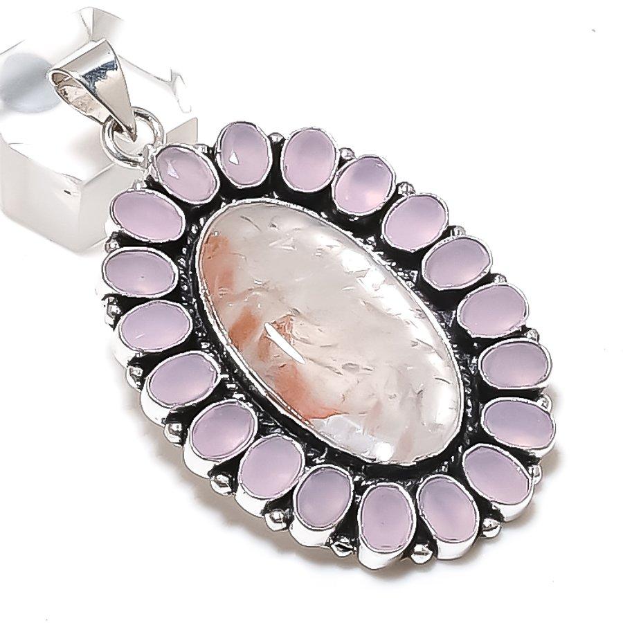 Natural Lodolite Quartz, Quartz 925 Sterling Silver Jewelry Pendant 2.52" ETC-13801