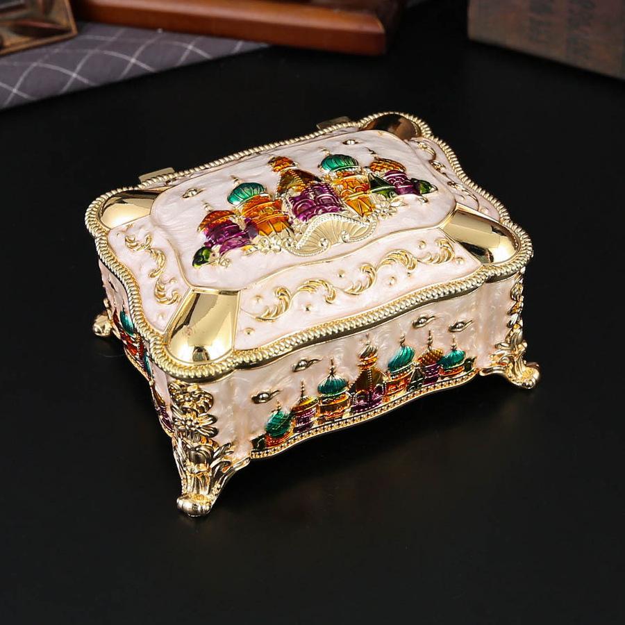 Rectangle Castle Jewelry Box Creative European Metal Flip Anti-Oxygen Ring Earrings Necklace Jewelry Box