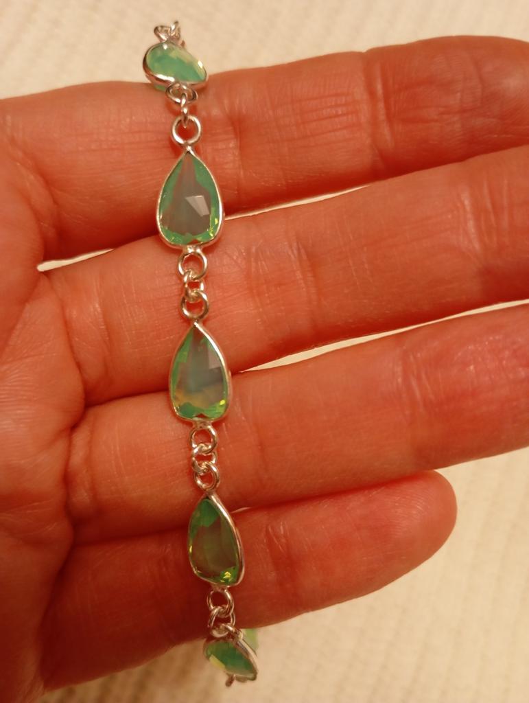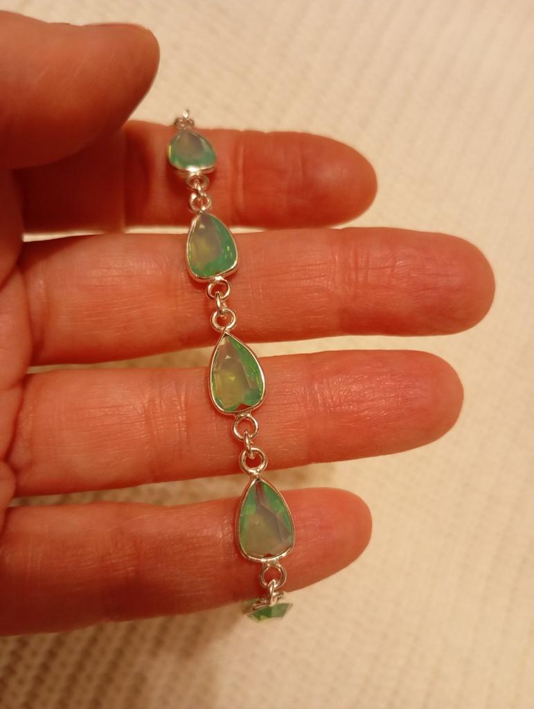 Beautiful delicate bracelet, stones of a delicate color. Happy with the purchase.