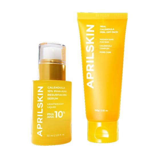 Aprilskin Pore-Refining Glow Set — Calendula Pore Tightening Serum 30ml + Real Calendula Peel Off Pack 100g