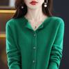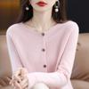 First-line Ready-to-wear Round Neck Womens Wool Cardigan Spring and Autumn Latest Simple Slim Sweater Knitted Sweater Jacket Top
