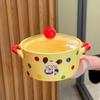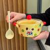 Cream Wind Tableware Cute Ceramic Instant Noodle Bowl with Lid Binaural Soup Bowl Instant Noodle Bowl for Student Dormitory
