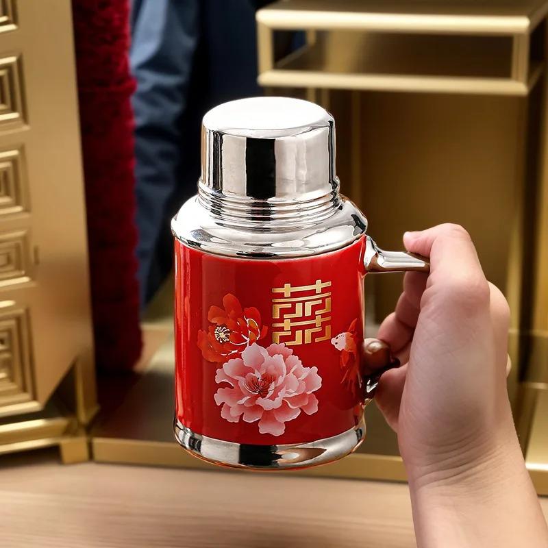 Legant Chinese Floral Thermos Mug | 480ml Vintage Vacuum Flask, Stainless Steel Insulated Travel Cup for Tea & Coffee Gift