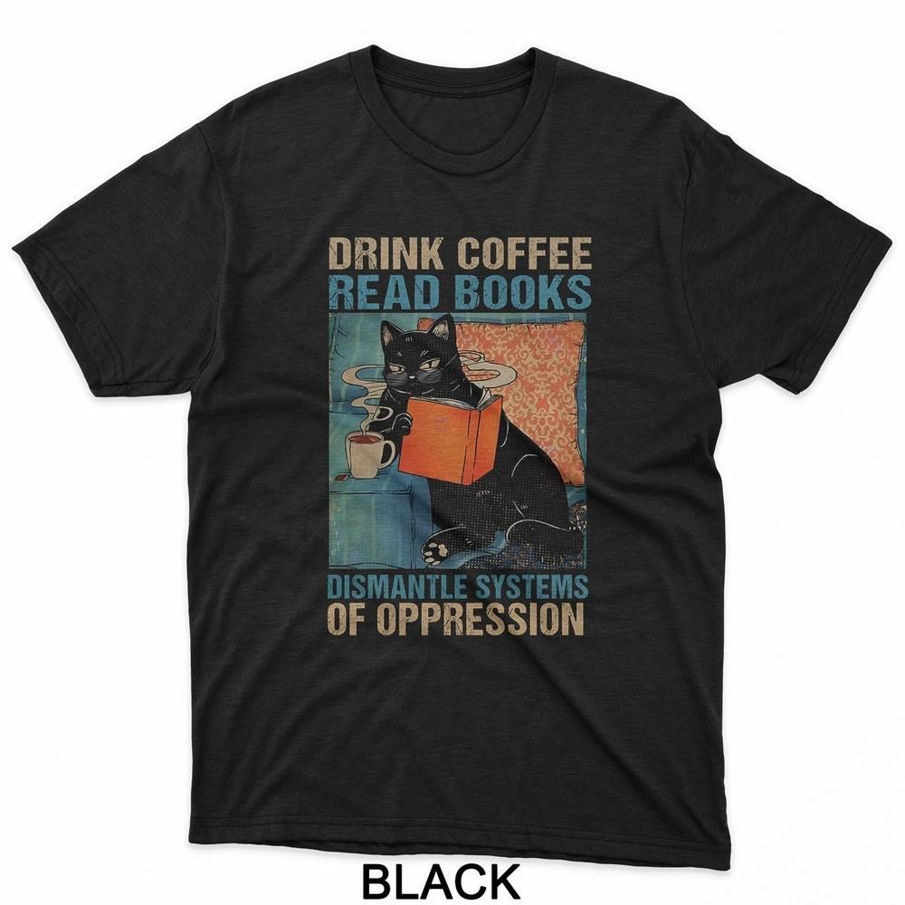 Drink Coffee Read Books Dismantle Systems Of Oppression Cat T-Shirt Unisex T-Shirt