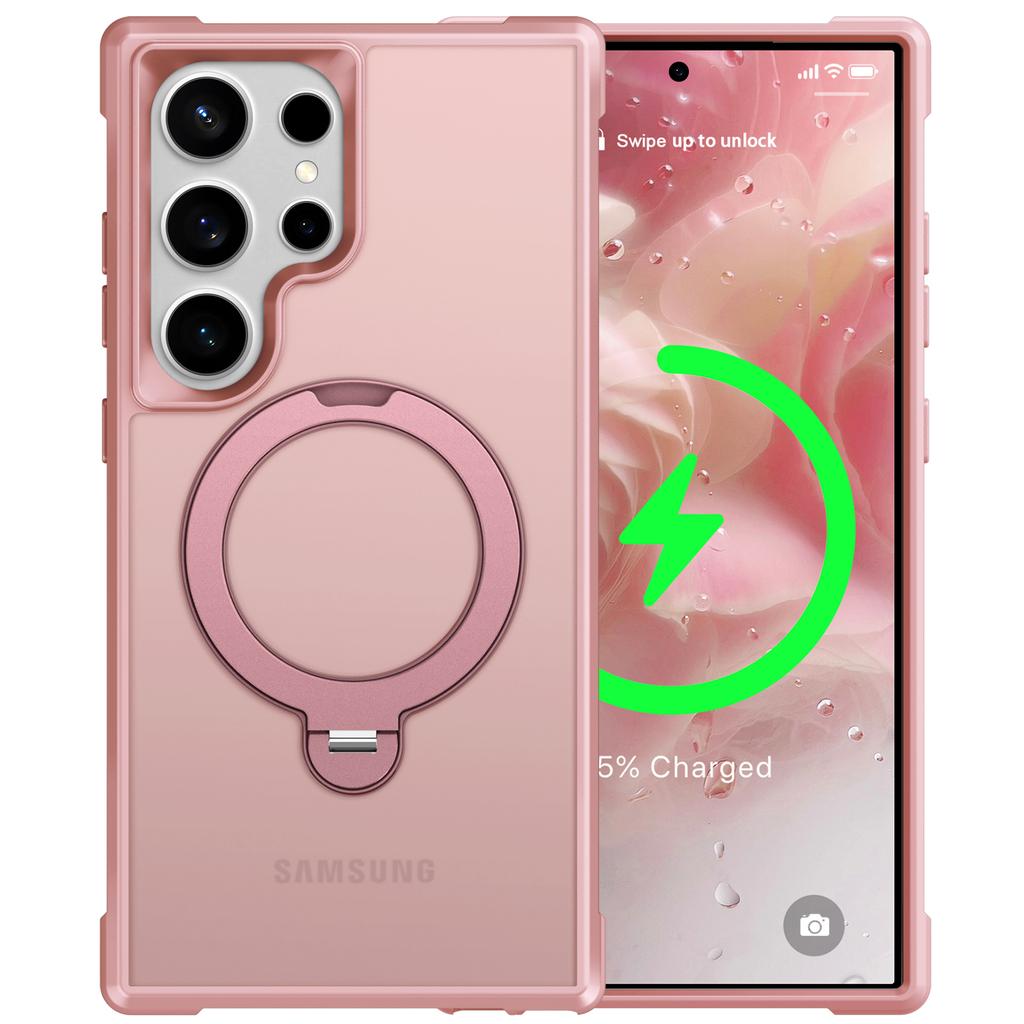 For Samsung Galaxy S24 Ultra Magnetic Case Kickstand TPU PC Shockproof Phone Back Cover