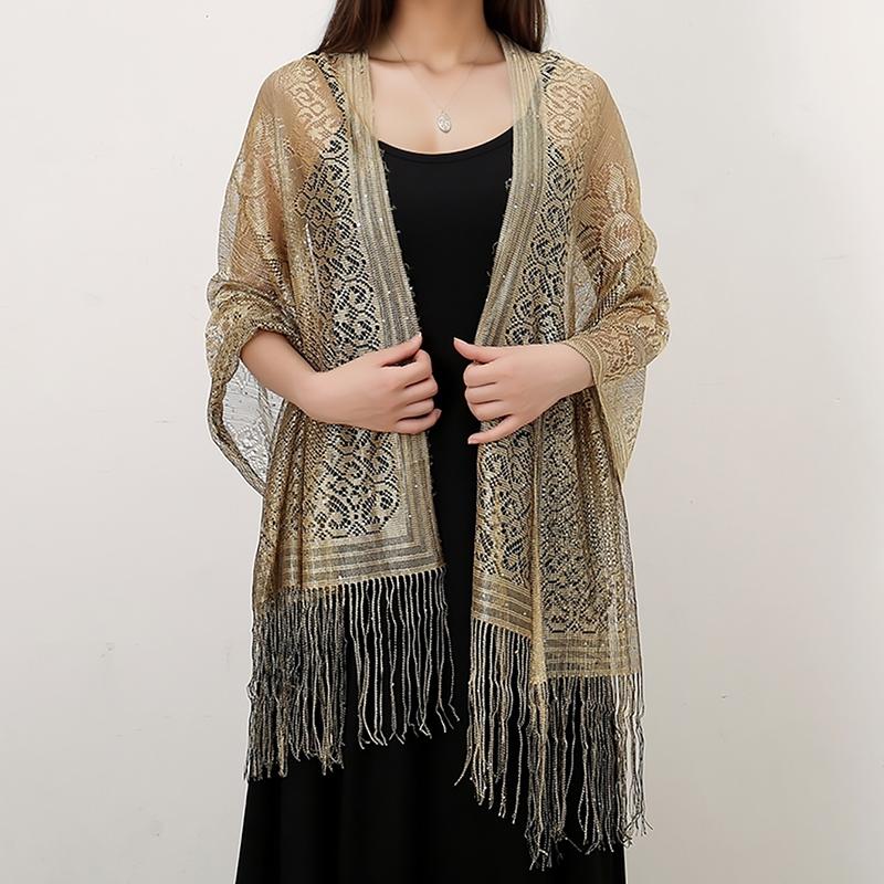 Women Summer Sequin Tassels Shawls Scarf Ladies Long Wraps Thin Hollow Travel Sunscreen Cape Femme Elegant Tippet Stoles