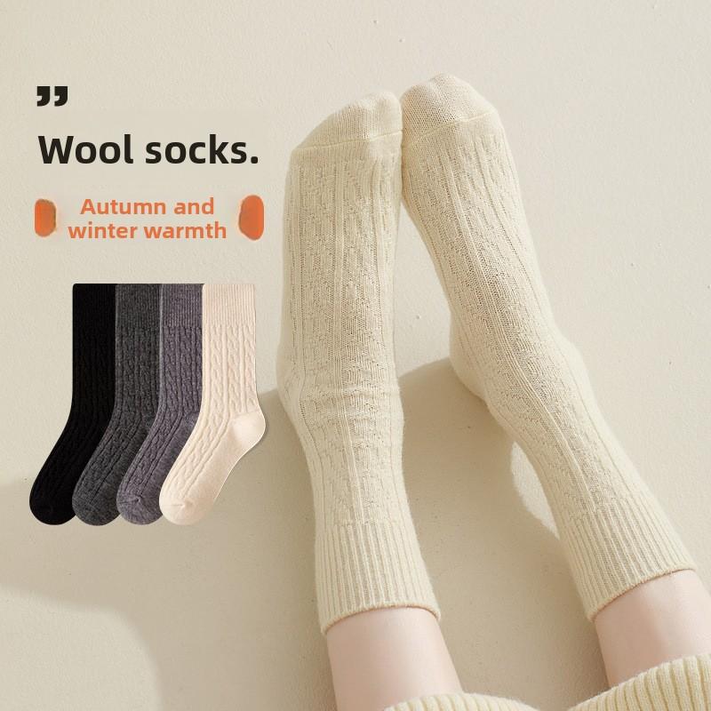 Twisted Wool Socks for Women In Winter, Pure Color, with Added Insulation, Mid-calf Length, Sleep Socks, Autumn Sheepskin Home-cozy Floor Socks