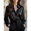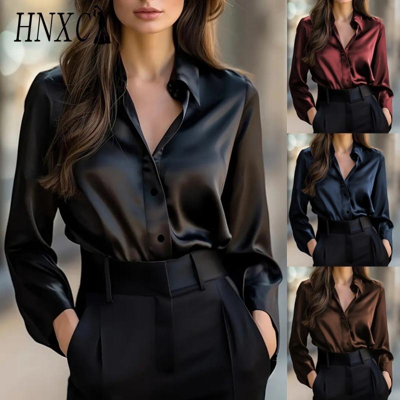 HNXC Women's Fashion Casual Solid Color Print Long Sleeve POLO Neck Blouses & Shirts