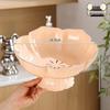 Elegant Crystal Footed Fruit Basket with Lace Design for Home Dining or Coffee Table.