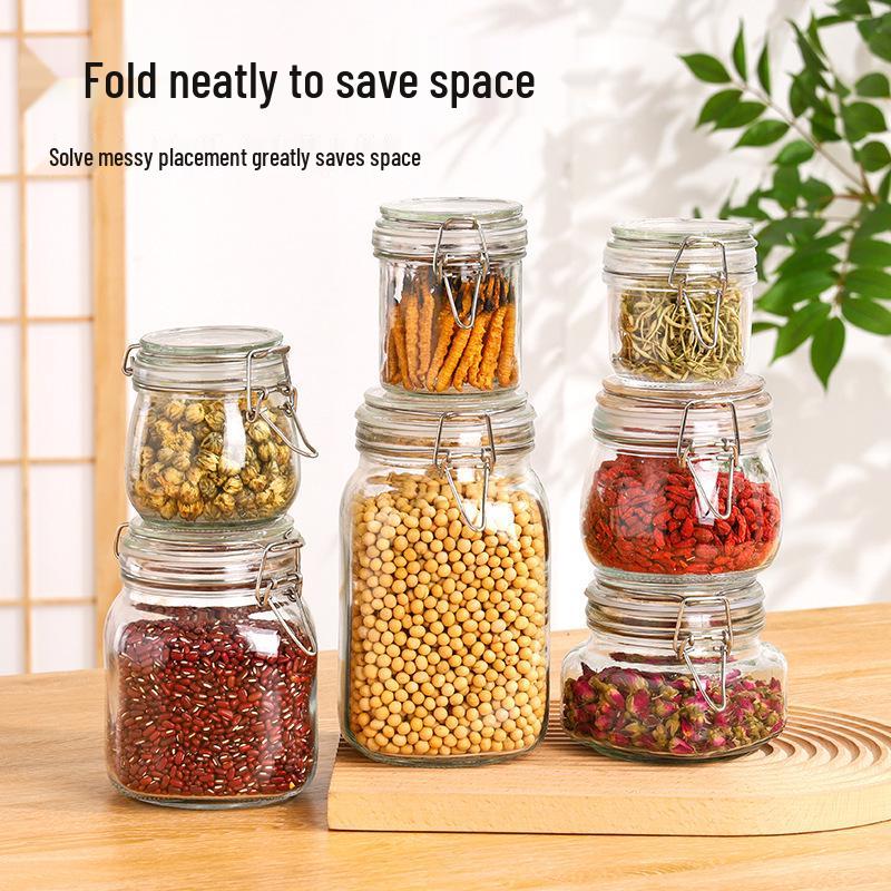 Large Transparent Glass Storage Jar with Lid for Grains, Pickles, Honey, and Tea - Moisture-proof and Airtight