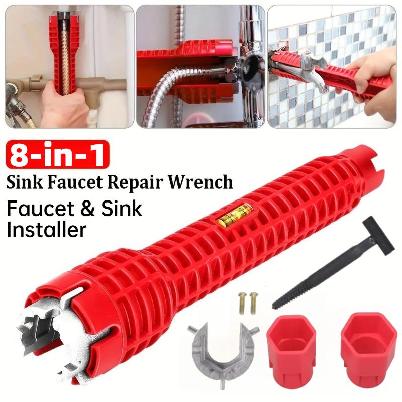 8 IN 1 Sink Faucet Wrench Plumbing Repair Tool Handle Double Head Wrench Spanner Tool Installer Ratchet Wrench Set for Bathroom 5 IN 1