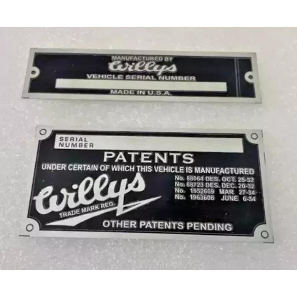 Vehicle Serial Number Data Patents Plate For Jeeps Willys