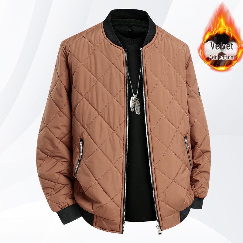 Men's Plus Size Cotton Padded Stand Collar Windbreaker - Fleece Lined, Casual Loose Fit for Spring and Autumn