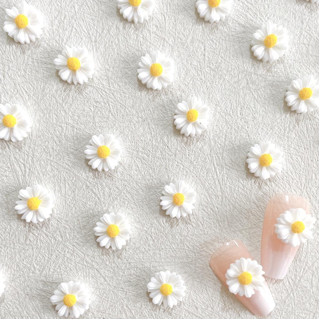 20 Pcs Daisy Nail Charm Flower Decoration Design 3D Nail Art Decal Applique Supplies,Summer Daisy Designs Resin Nail Art Jewelry