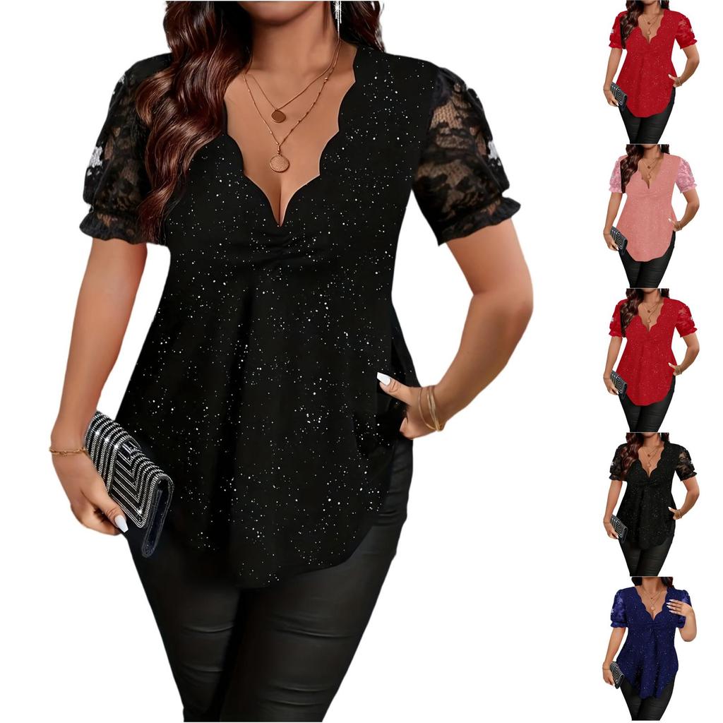 Women's Fashion Casual Lace Trim V Neck Plus Size Short Sleeve Top Women's Fashionable Casual Short sleeves Top description 1. [Fabric]: High quality long sleeves, the overall clothing fabric is breathable and elastic, very soft and comfortable, very smooth for the skin, and very comfortable to wear all day long 2. [Design]: Women's shirt, dress, casual top, round neck design, loose fit, and comfortable material 3. [Matching]: Pair with tight pants, jackets, jeans, capris, pants, or skirts in spring or summer to make you more elegant and feminine 4. [Occasion]: Women's fashionable shirts are suitable for , work, vacation, beach, school, outing, gathering, home and daily wear 5. [ Washing and care ]: Wash and dry with cold water. Do not use excessively high water temperature during cleaning to avoid fading. Different monitors may have slight color differences when viewed. Please do not mind product information: Gender: Female Occasion: leisure, Material: Polyester, Spandex : casual and sexy Length:Short sleeves Thickness: standard Cleaning method: wash hands in cold water, hang or dry You will get: 1 piece women's Top