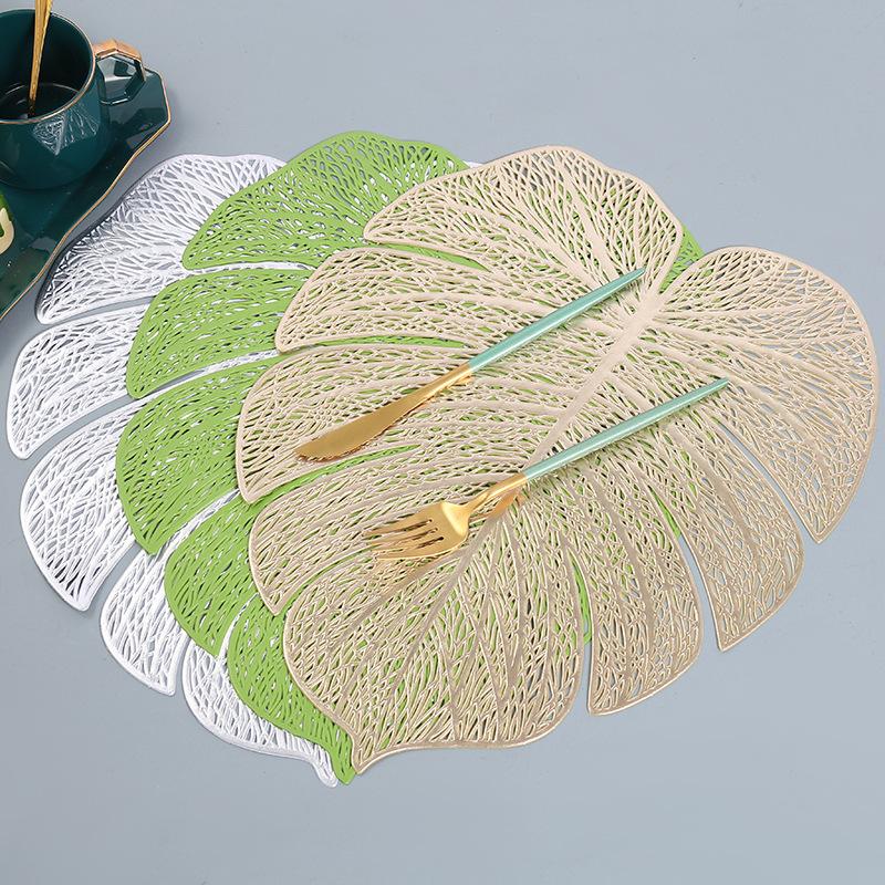 Monstera Leaf Placemat, Uniquely Shaped Gold,stamped Decorative Mat, And Non, Western, Placemat For Home Use.