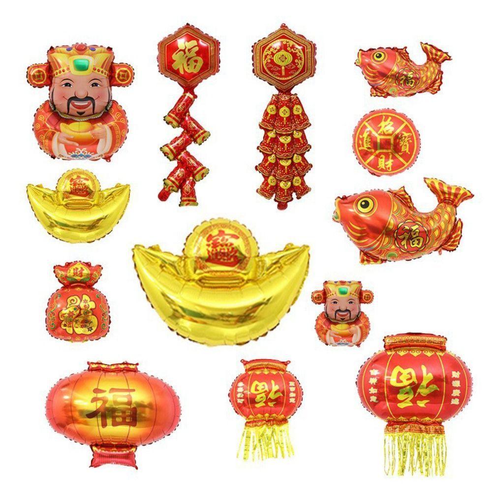 Chinese New Year Balloon Gold Ingot Fish Tassel Firecracker Shape Aluminum Film Balloon Spring Festival Home Decoration Balloon