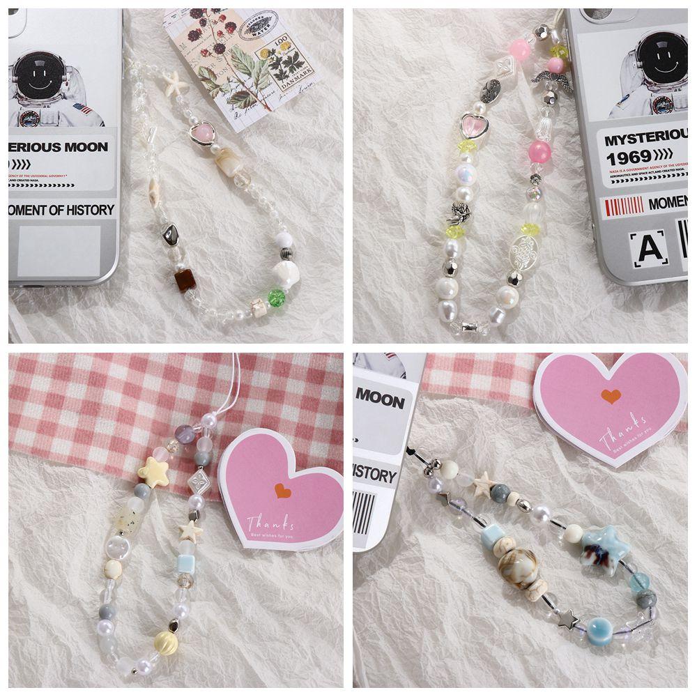 Star Pearl Beaded Phone Chain Phone Charms Anti-Lost Phone Strap Wrist Strap Handmade Mobile Lanyard Women Girls
