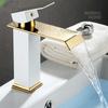 Basin Faucet Gold and Black Waterfall Faucet Brass Bathroom Faucet Bathroom Basin Faucet Mixer Tap Hot and Cold Sink Faucet