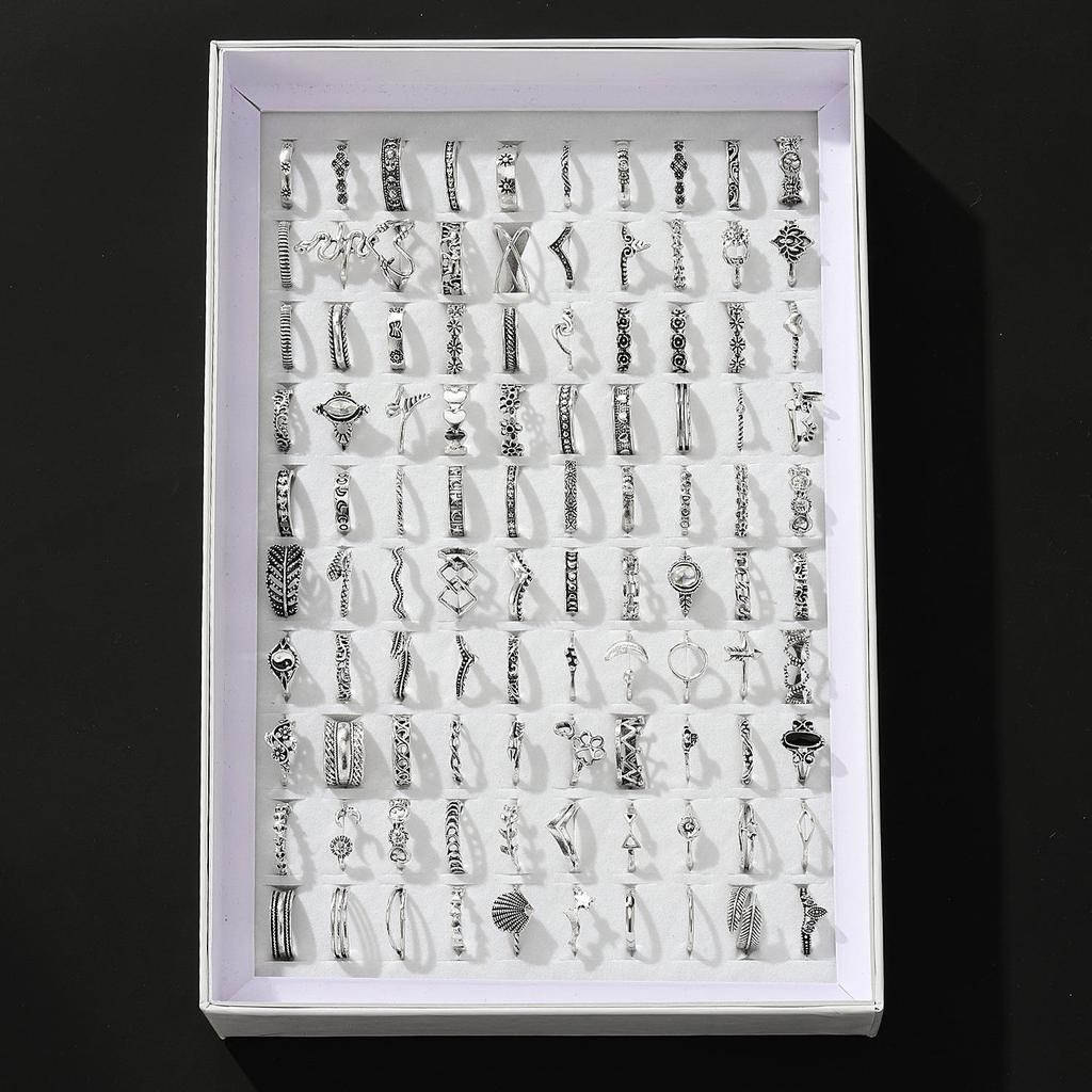 Korean Style 45-Piece Retro Silver Heart Ring Set - Versatile Stackable Fashion Accessories