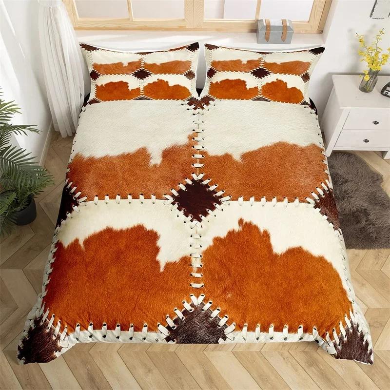 Cowhide Duvet Cover Twin King Farm Animal Bedding Set Western Patchwork Comforter Cover Microfiber Cow Fur Print Bedspread Cover