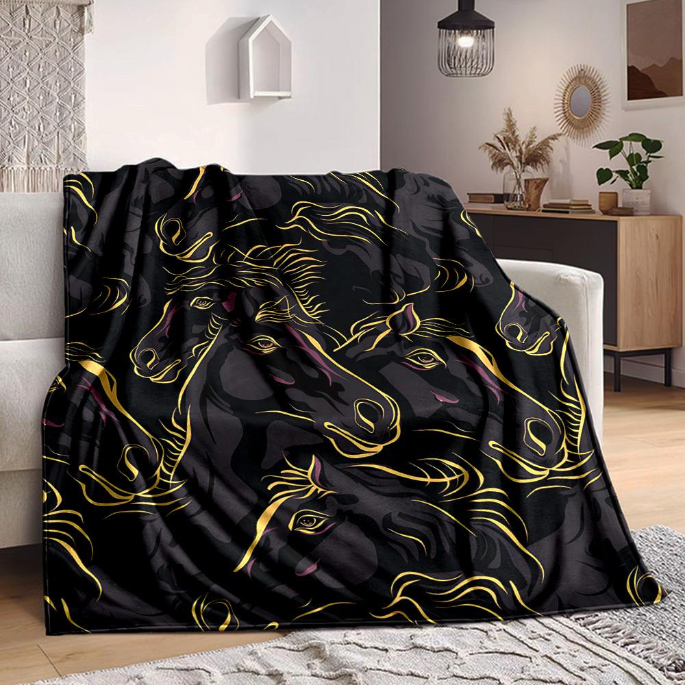 1pc Horse Pattern Print Blanket Lightweight Flannel Throw Blanket For Sofa, Bed, Living Room, Office, Outdoor Travel, Camping