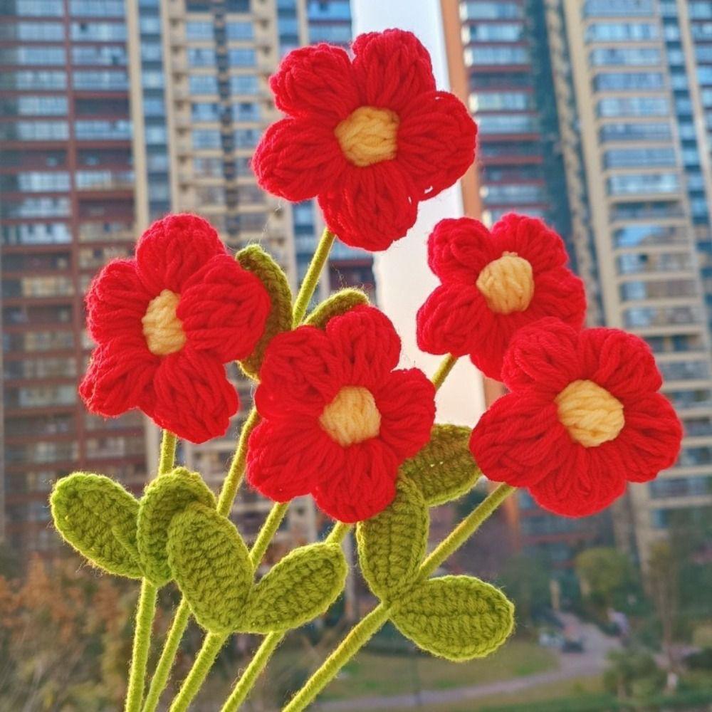 Party Supplies Handmade Crochet Heart Bouquet Knitting Wool Love Crochet Flower Bouquet DIY Artificial Flower Valentine's Day