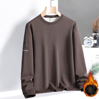 New Winter Trendy Brand Plus Velvet Sweater for Men, Fashionable Round Neck Casual Warm Men's Base Layer Shirt for Men