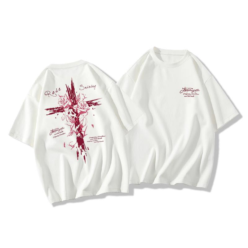 2025 New Rose Cross Summer 100 Cotton Tshirt Adults Men Outdoor Daily Cool Comfortable Versatile Soft Breathable Shortsleeved