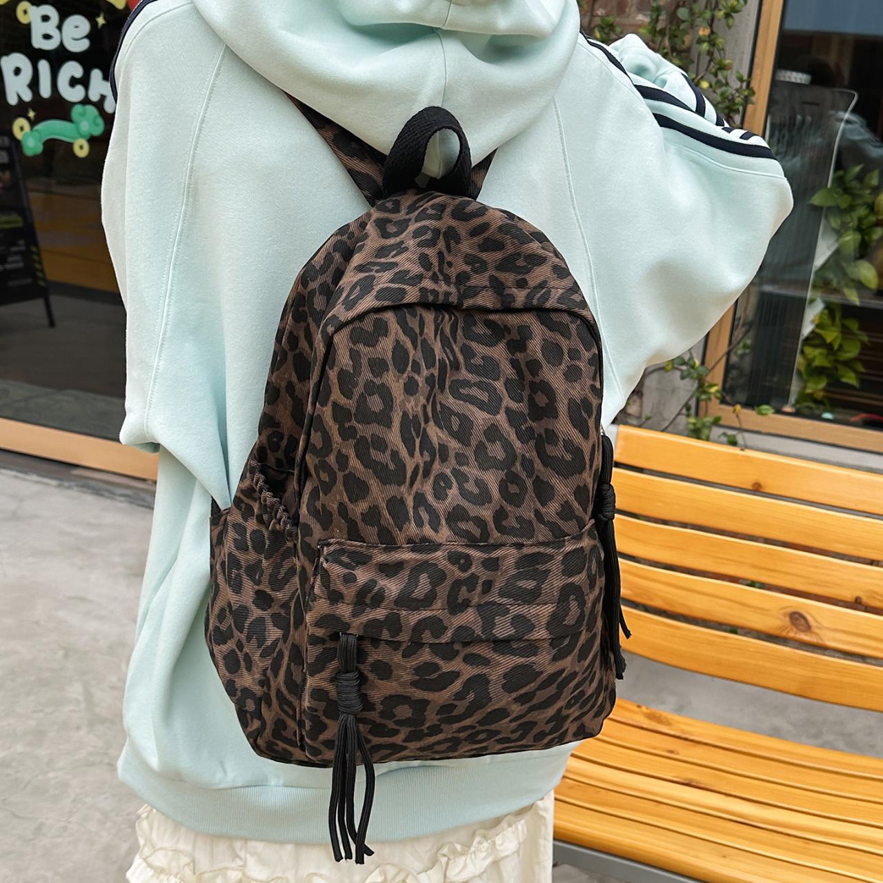 Leopard Print Backpack Casual Daily Use Trendy Street Style Lightweight Backpack for Women with Tassel Detail for School Travel and Everyday Outings
