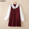 VONDA Women Lapel Neck Long Sleeve Ruffled Office Style Elegant Mini Dress