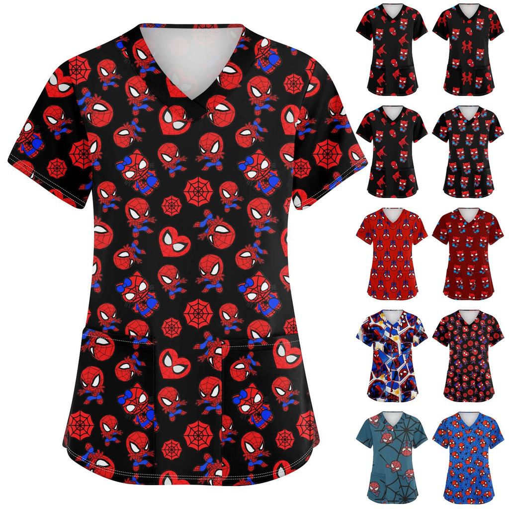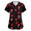 Women's Fashion V-neck Short Sleeve Workwear With Pockets Printed Tops