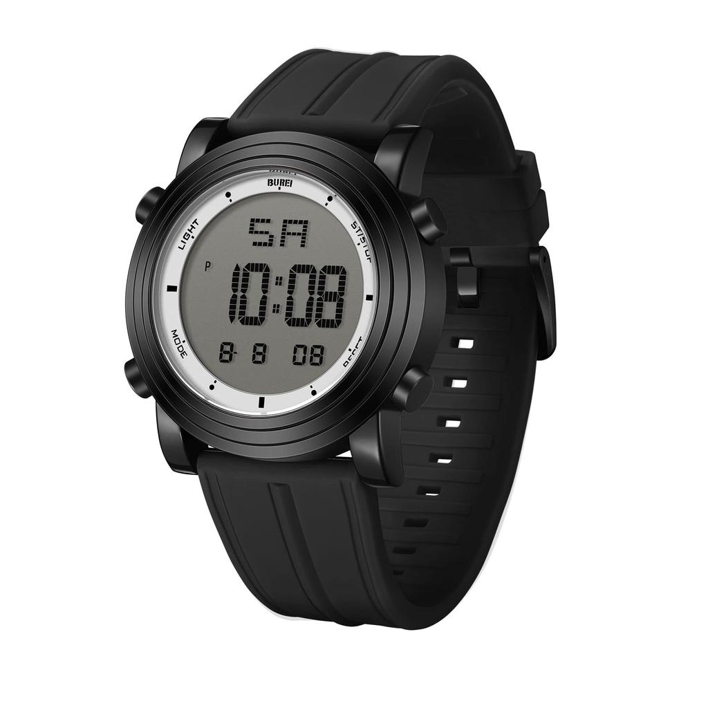 BUREI Digital Watch with LED Date Outdoor Black Men's Display, Waterproof, Stylish, Sports, Display, Multi-Function, Watch,