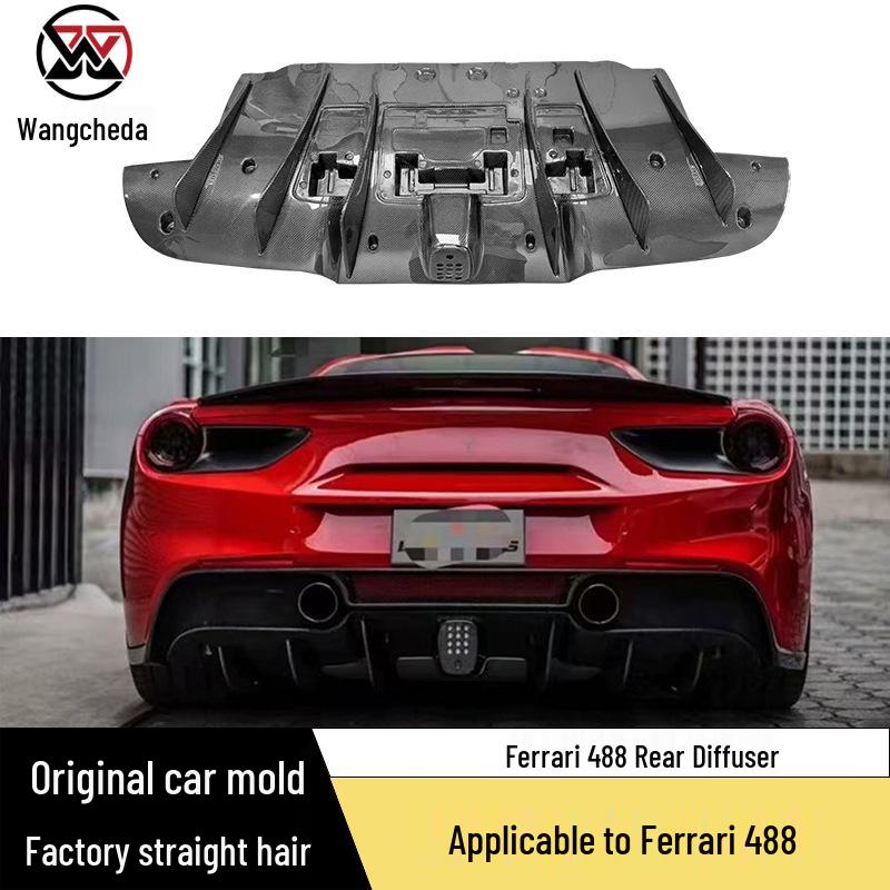 Designed for Ferrari 488: Carbon Fiber Rear Lip Spoiler and Lower Bumper N Body Kit Options.