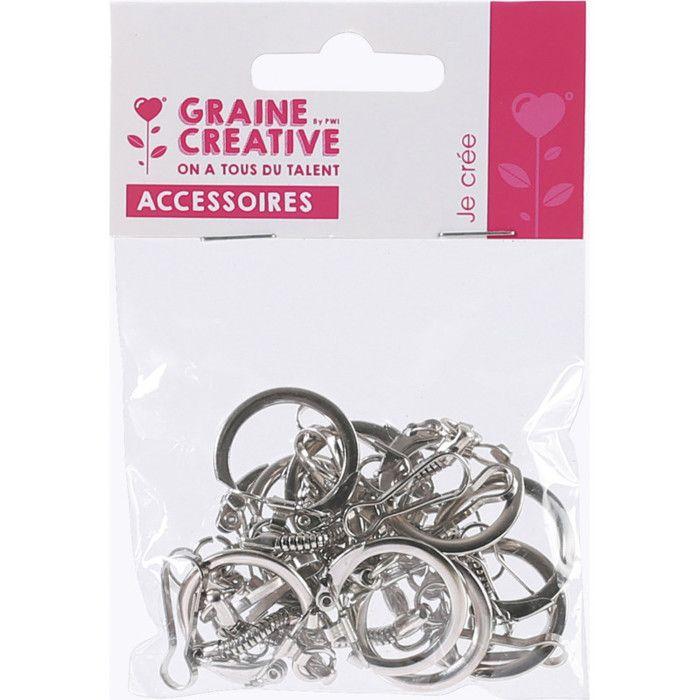 Keyrings - Nickel - Pack of 10 - Metallic - Mixed - Carabiners Included