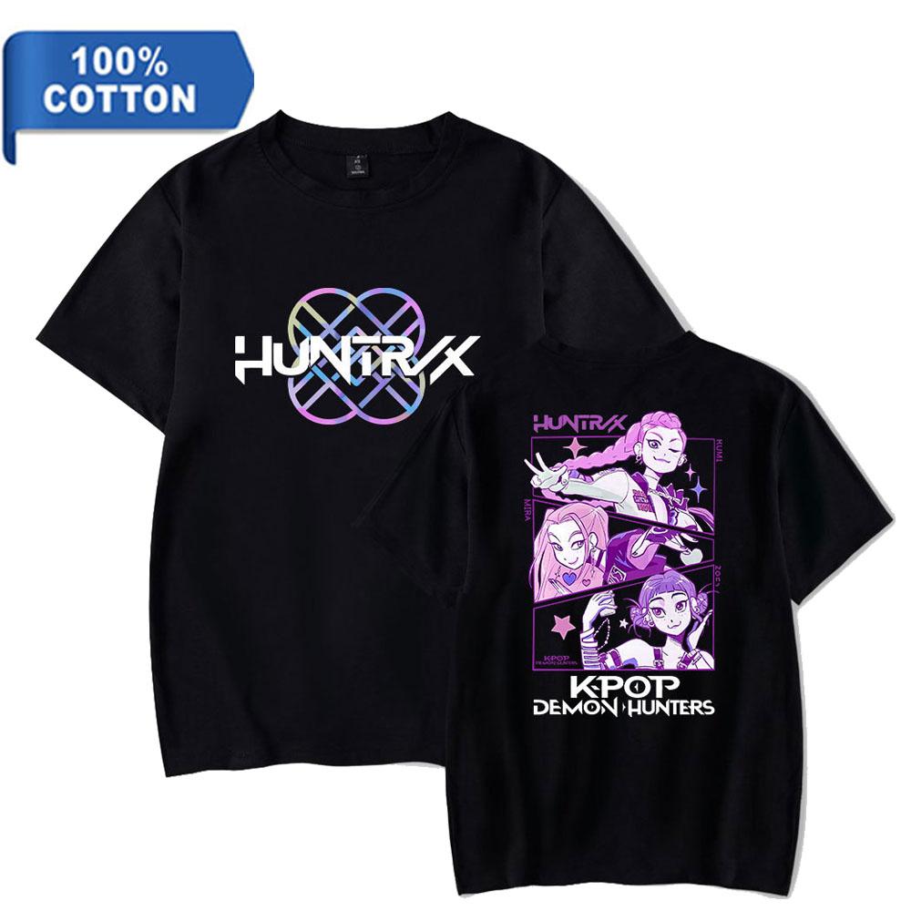 Anime KPop Demon Hunters Huntrix Tshirt Men Women Fashion Cotton T Shirt Summer Unisex Crewneck Short Sleeve Streetwear Tees