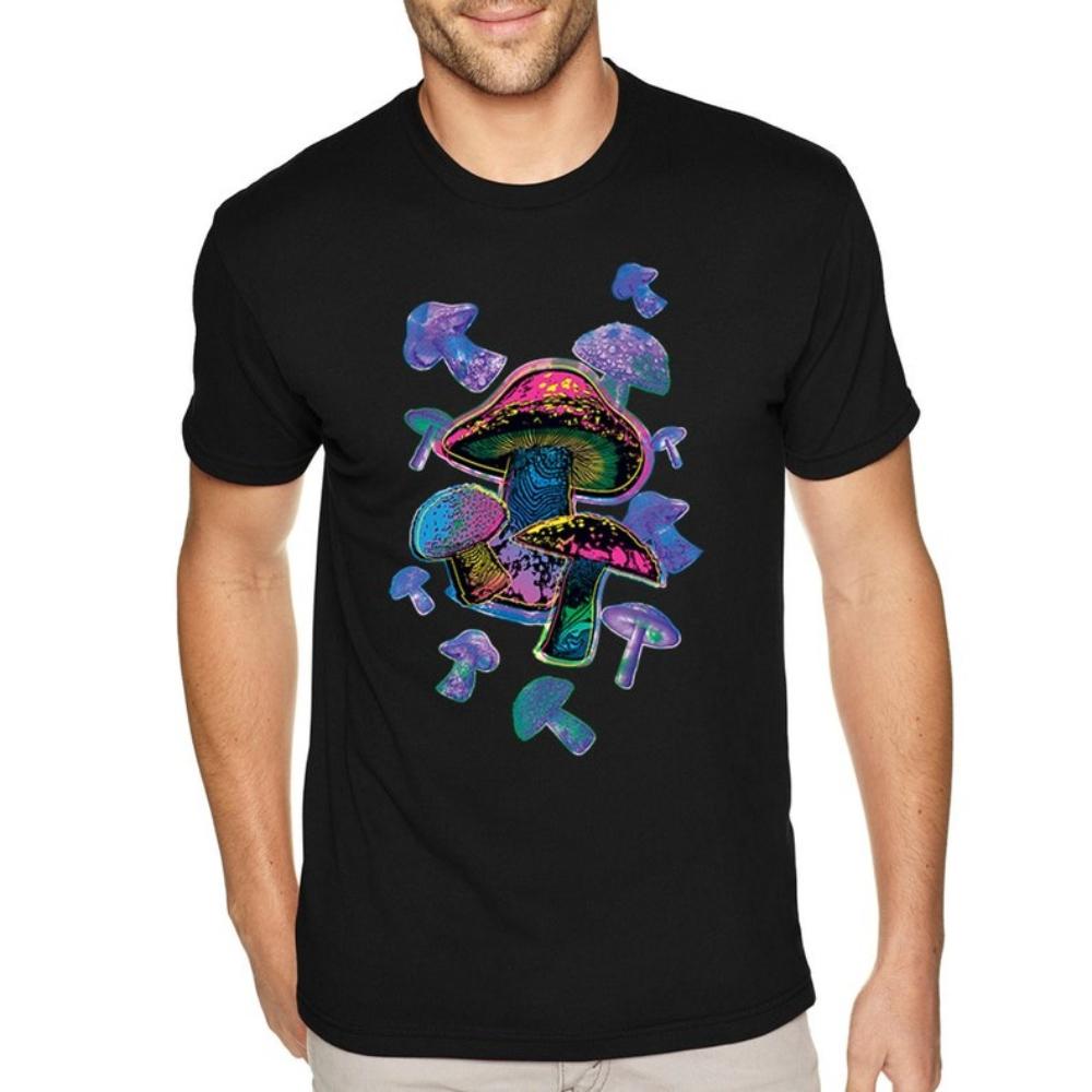 Colorful Mushrooms TShirt Rave Hippie Festival Magic Trippy Shirt Psychedelic Party Nature Plants Forest Tee Men Cotton Shirt