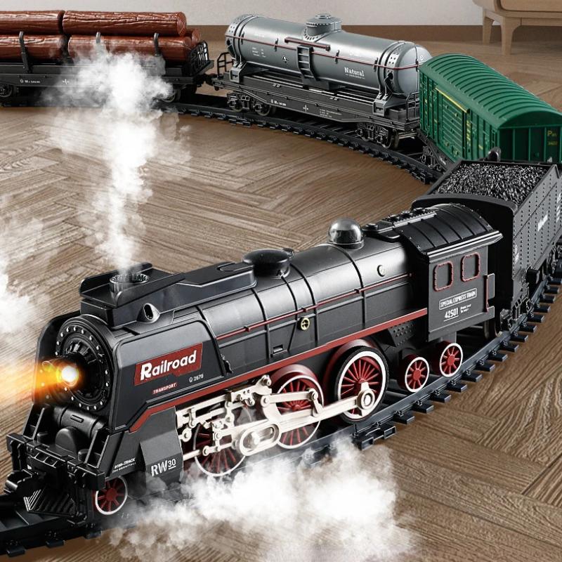 Smart Simulation Design:This interactive steam train set features three smoke outlets in different positions, creating a realistic steaming effect that brings the train to life. Enjoy forward and backward motion, authentic whistle and engine sounds, and a built-in smoke switch to adjust the fog output. Two working lights enhance the visual appeal as the train travels around the track.