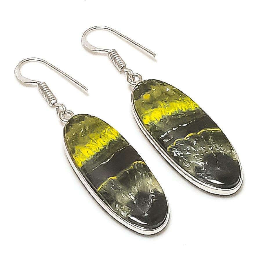Natural Bumble Bee Jasper Gemstone 925 Sterling Silver Earring 2.05" AE-11479