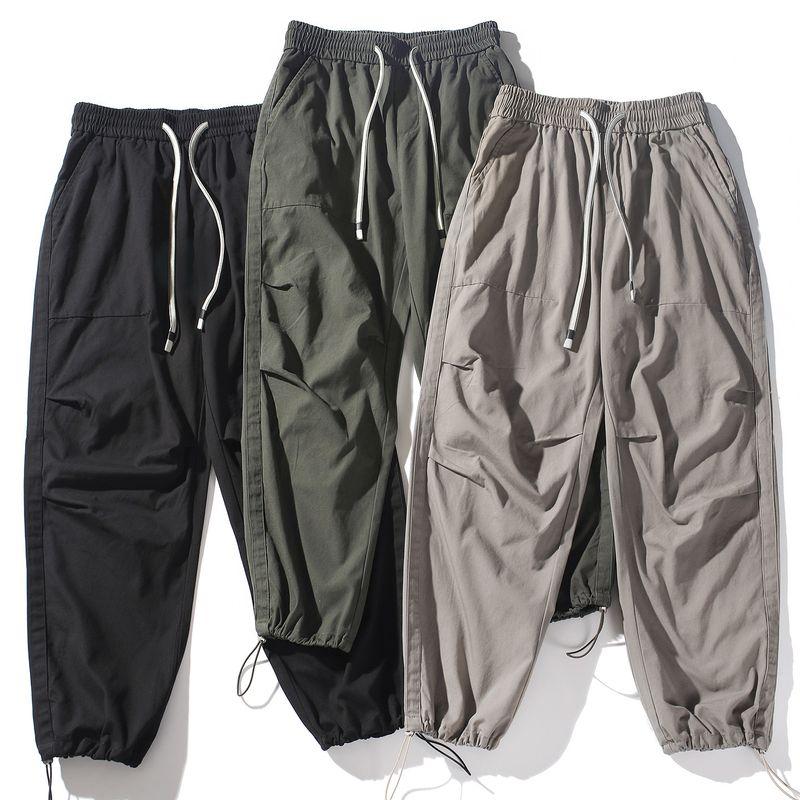 Foreign Trade Japanese-Style Washed Cotton Light Workwear Pants with Drawstring Elastic Waist, Straight-Leg Casual Pants, Jogger Pants for Men