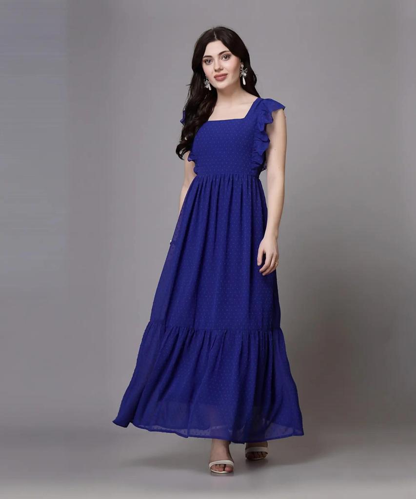 Women Fit and Flare Dark Blue Midi/Calf Length Dress