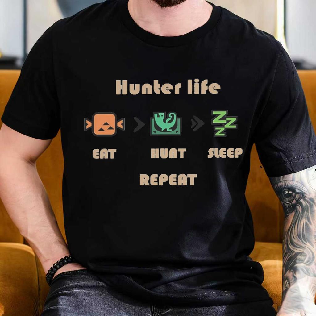 2025 Summer Mens Monster Hunter 100 Pure Cotton Printed Tshirt Hunters Life Casual Short Sleeve Crew Neck Tees Gift Idea Y2k