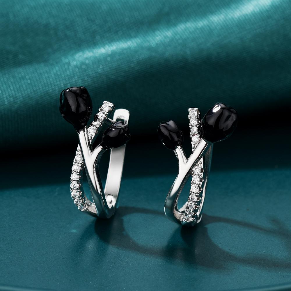 Copper Hoop Earrings with Black Zirconia & Accents, Cross Hoop Design