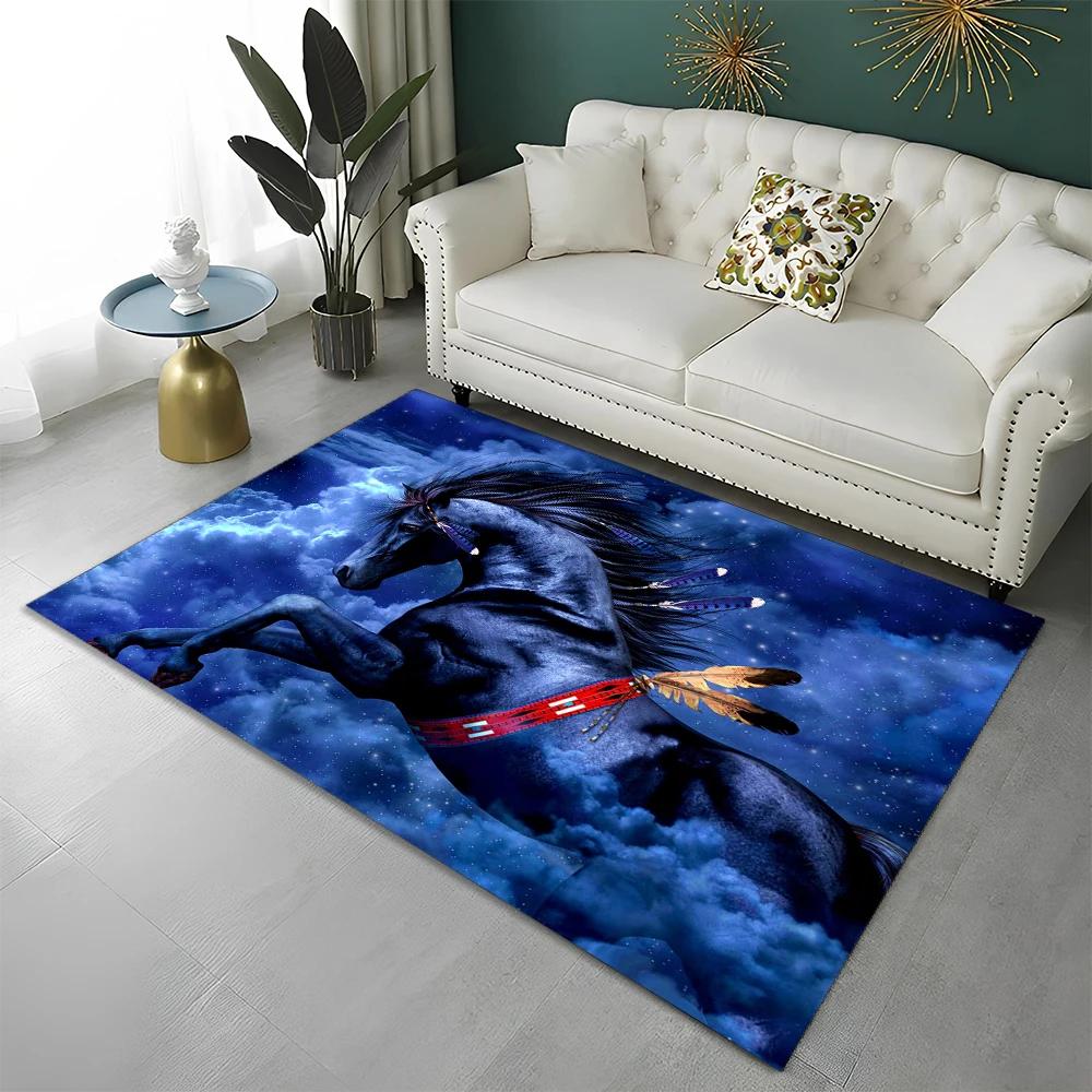 3D Animal Pentium Gallant Horse Steed Carpet Rug for Home Living Room Bedroom Sofa Doormat Decor,kid Area Rug Non-slip Floor Mat