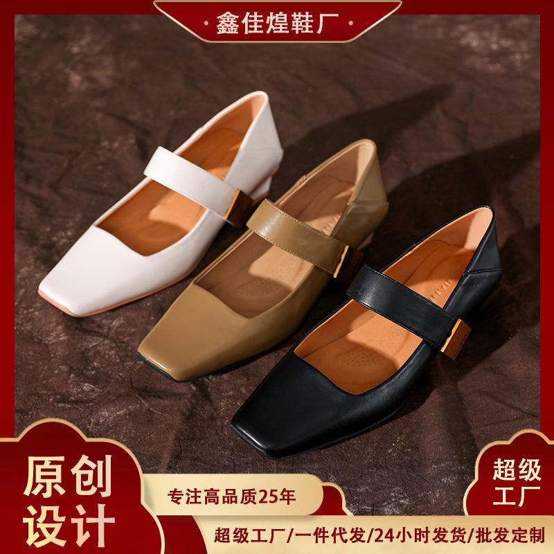 X999-1 French Internet Celebrity Fairy Mary Jane Shoes Velcro Soft Leather Versatile Square Head Single Shoes Low Heel Can Be Stepped On
