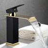 Basin Faucet Gold and Black Waterfall Faucet Brass Bathroom Faucet Bathroom Basin Faucet Mixer Tap Hot and Cold Sink Faucet